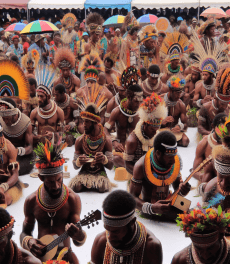 Vibrant display of traditional singing, dancing, and rituals by tribes from the Western Highlands province..